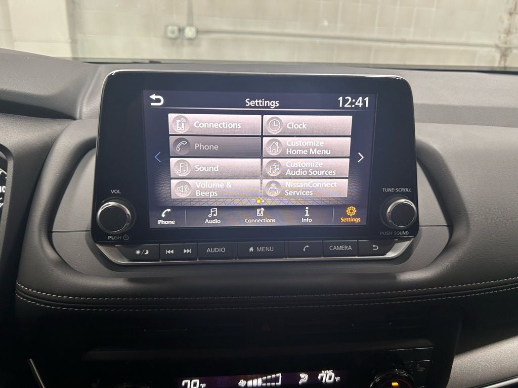 - Radio: AM/FM NissanConnect -inc: 6 speakers plus 2 tweeters, Apple CarPlay, Android Auto, 8" color touch screen display, Bluetooth®, 2 front USB type-C, Wi-Fi hotspot and NissanConnect Services powered by SiriusXM