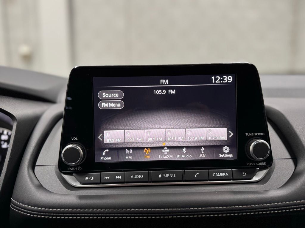 - Radio: AM/FM NissanConnect -inc: 6 speakers plus 2 tweeters, Apple CarPlay, Android Auto, 8" color touch screen display, Bluetooth®, 2 front USB type-C, Wi-Fi hotspot and NissanConnect Services powered by SiriusXM