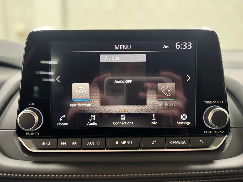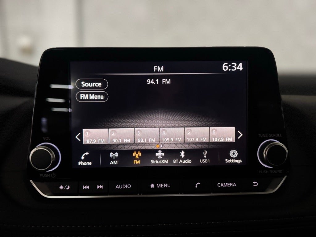 - Radio: AM/FM NissanConnect -inc: 6 speakers plus 2 tweeters, Apple CarPlay, Android Auto, 8" color touch screen display, Bluetooth®, 2 front USB type-C, Wi-Fi hotspot and NissanConnect Services powered by SiriusXM