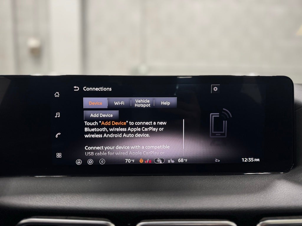 - Radio: AM/FM w/RDS/MP3 -inc: 6 speakers, 12.3" NissanConnect multimedia center display, Bluetooth® hands-free phone system, streaming audio via Bluetooth®, hands-free text messaging assistant, Siri Eyes Free, Google Assistant voice recognition, wireless Apple CarPlay and Android Auto, NissanConnect services, Wi-Fi hotspot, Over-The-Air (OTA) updating for headunit firmware via Wi-Fi WPA2 connection and (2) front USB connection port (type C)