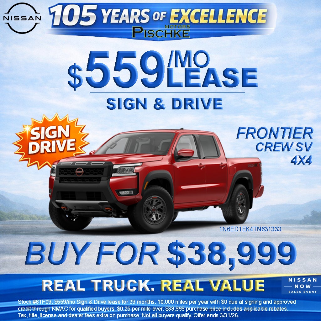Stock #8TF09. $559/mo Sign & Drive lease for 39 months, 10,000 miles per year with $0 due at signing and approved credit through NMAC for qualified buyers. $0.25 per mile over. $38,999 purchase price includes applicable rebates. Tax, title, license and dealer fees extra on purchase. Not all buyers qualify. Offer ends 3/31/26.