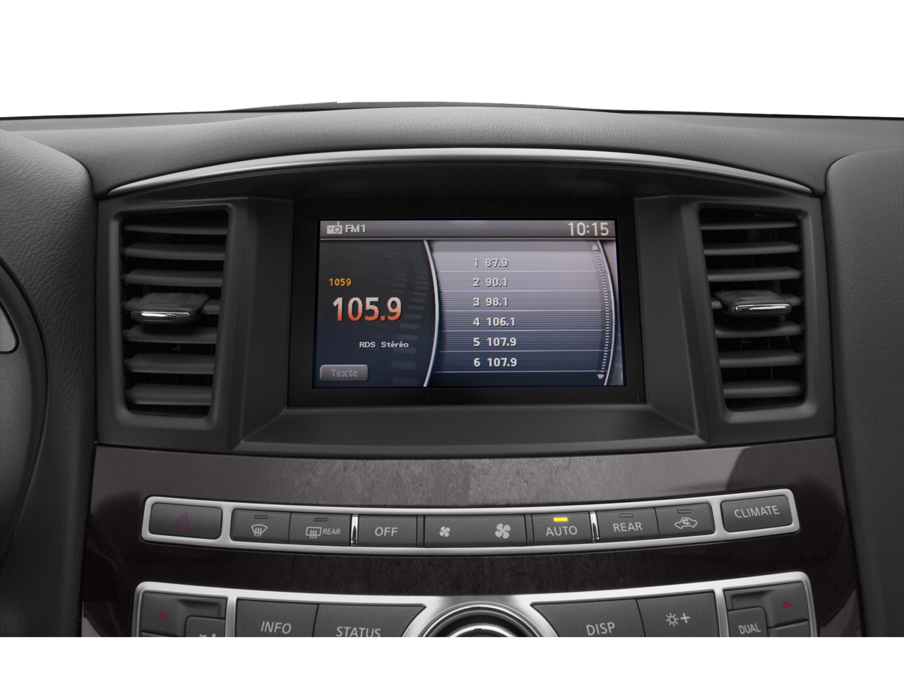 - Radio: AM/FM/CD/MP3 Audio System -inc: 6-speakers, Radio Data System (RDS), speed-sensitive volume control, Bluetooth® Hands-free phone system, illuminated steering wheel-mounted audio controls, USB connection port for iPod interface and other compatible devices, SiriusXM Satellite radio, auxiliary audio/video input jacks in front center console and INFINITI controller for comfort and convenience features