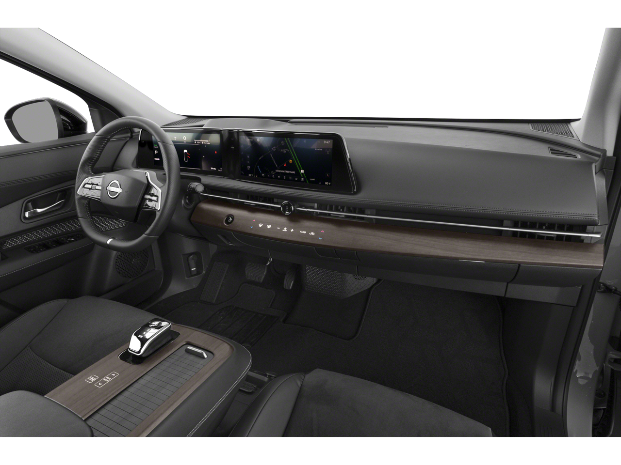 - Radio: AM/FM Audio System -inc: 12.3" color dual display, navigation w/voice recognition (english, french and spanish), 6 speakers, MP3/WMA playback, Bluetooth® streaming audio, speed-sensitive volume control (SSV), satellite radio pre-wiring, wireless CarPlay, tethered Android Auto, SiriusXM, SiriusXM Travel Link, NissanConnect EV, Bluetooth® hands-free phone system (w/voice recognition in english, french and spanish), voice destination entry (VDE) and hands-free text messaging assistant