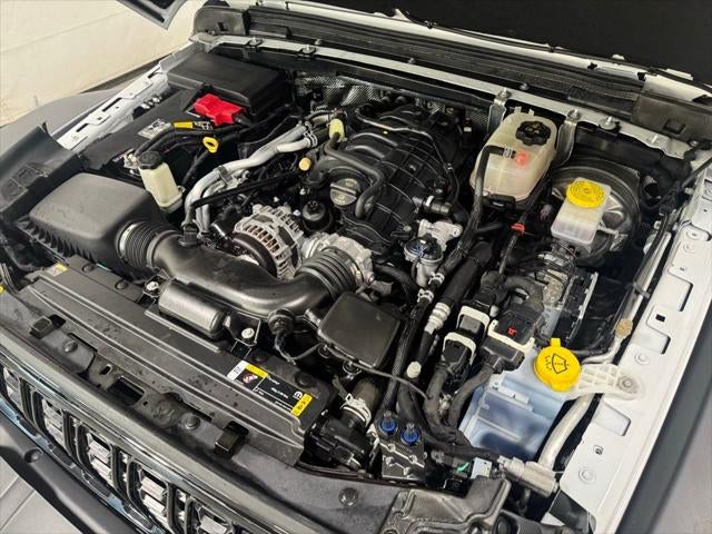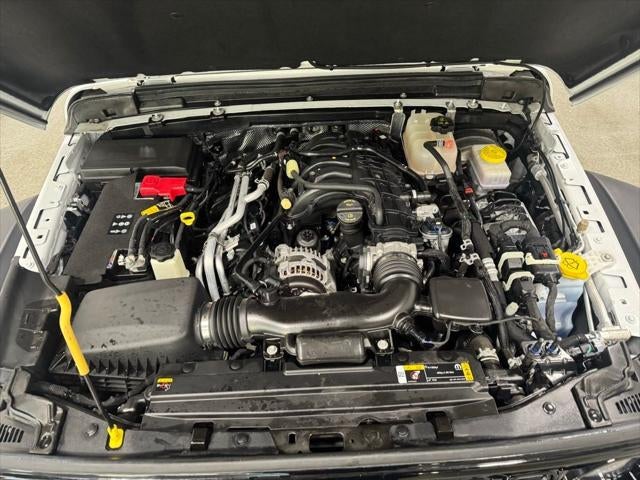 Engineered for both on-road comfort and off-road capability, this Wrangler Willys boasts a rugged suspension system, Dana front and rear axles, and an E-Locker rear differential, ensuring exceptional traction and control in even the most challenging conditions. The Willys-specific styling cues, including the unique hood decal and black grille, further enhance the vehicle's bold and adventurous persona.